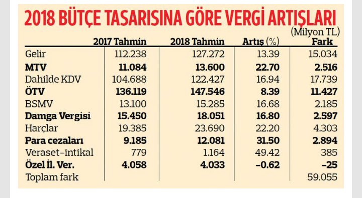 Seneye 59 milyar TL daha fazla vergi toplamayı umuyor hükümetimiz. ne de olsa bir arabaya iki araba parası vergi vermek koymuyor aziz millete bir araba parası daha koy . ne güzel ülke büyüyor.. ver mehteri !