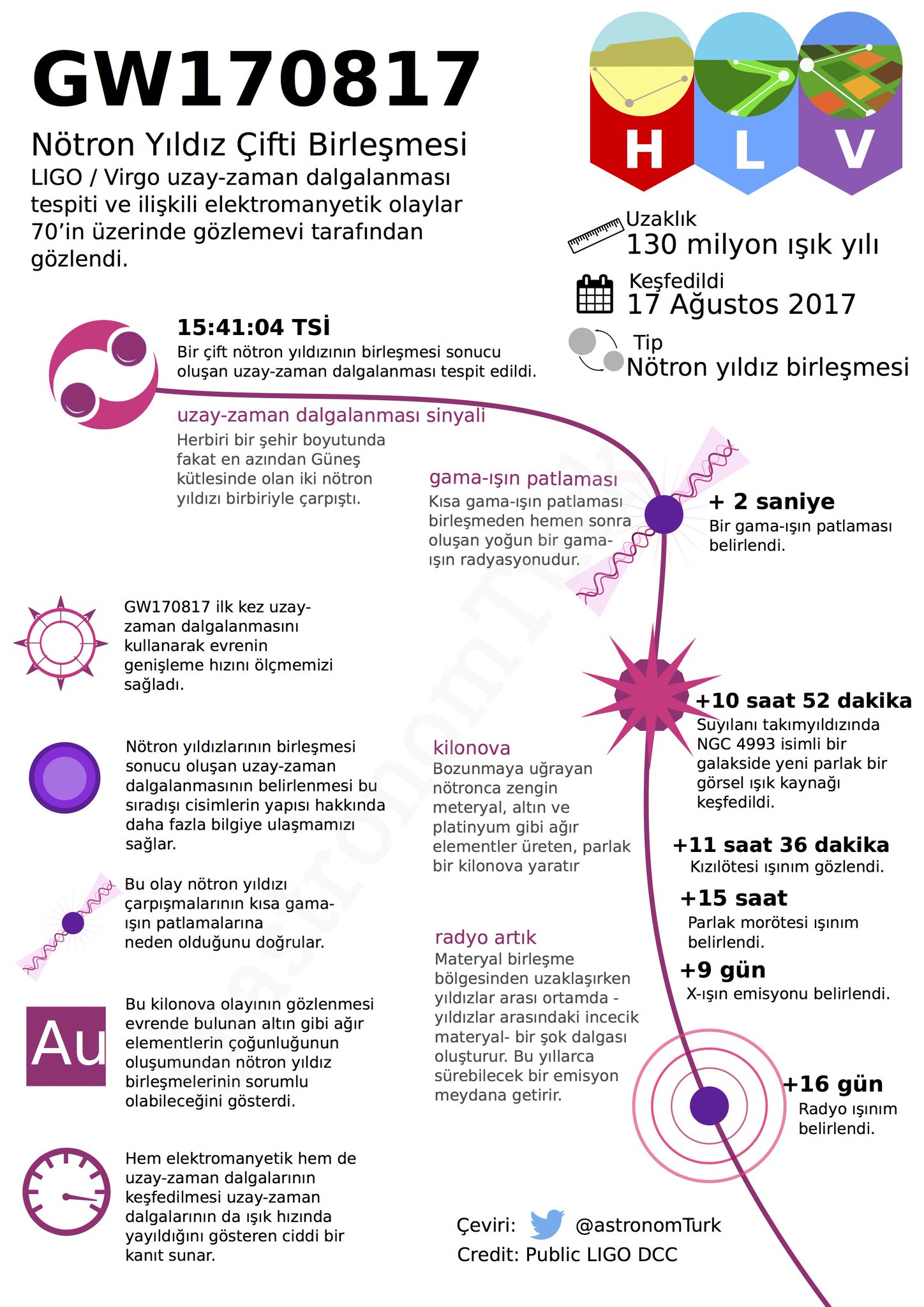 130 milyon yıl önce gerçekleşen iki nötron yıldızının çarpışmasından ortaya çıkan uzay-zaman dalgalarını dün tespit ettik ve sesini kaydettik. Einstein gene haklı çıktı. yukarıdaki tablo bu keşfi özetliyor. daha beş yüz sene önce güneşi dünyanın etrafında dönüyor ve dünyayı da evrenin merkezi sanıyorduk. şimdi nötron yıldızlarının çarpışmalarını canlı izliyoruz. Tanrının "ben sizini bilmediklerinizi biliyorum" karşı cevabının açıklaması da bilim üretiyor olmamız sanırım.Tanrının bildiği sır buydu.